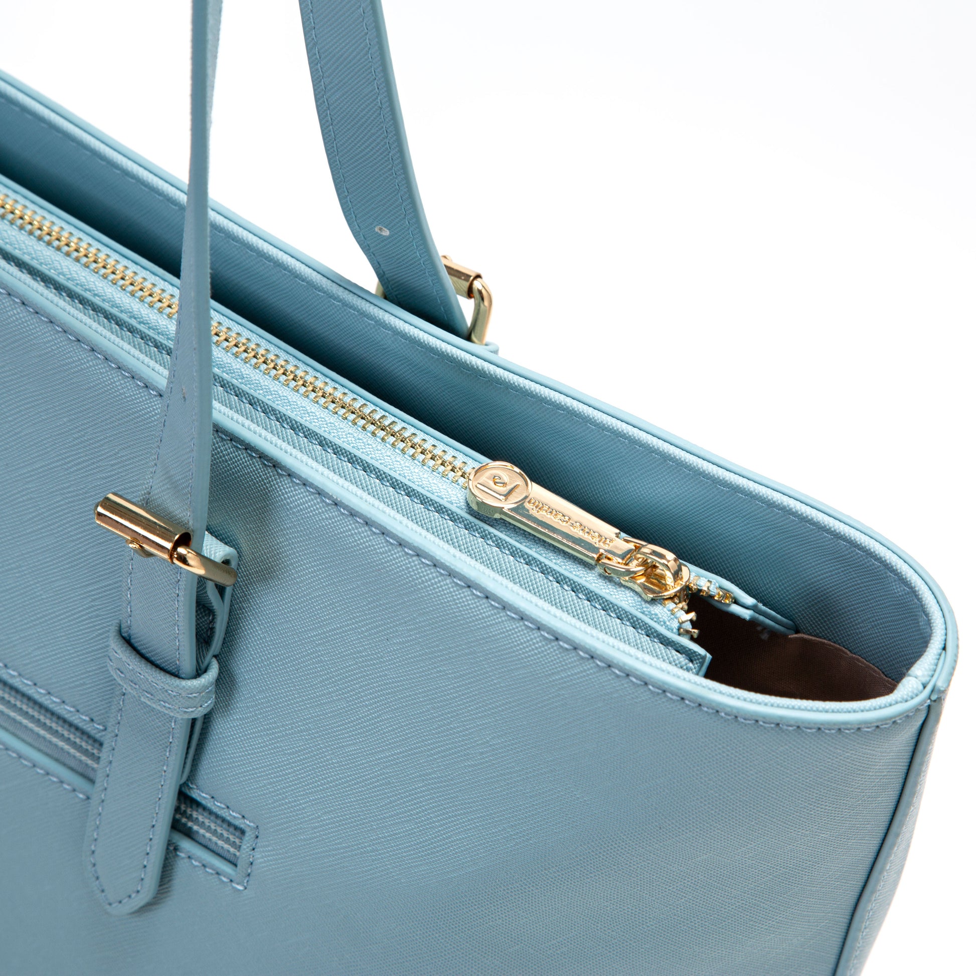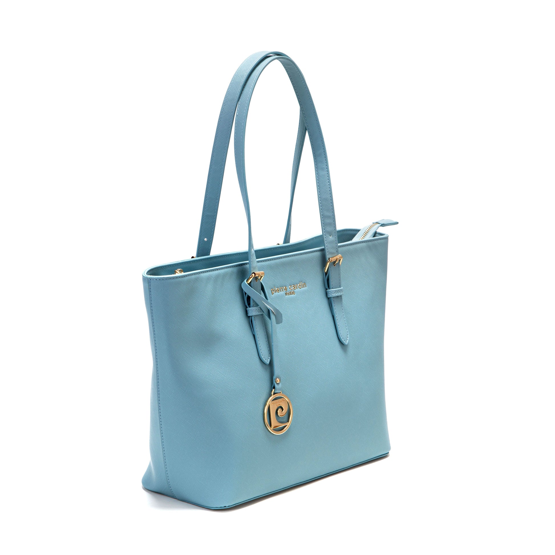 This Pierre Cardin tote bag combines functionality and refinement. Crafted from textured synthetic material and available in a luminous sky blue, it's perfect for carrying your busy days with a touch of sophistication.